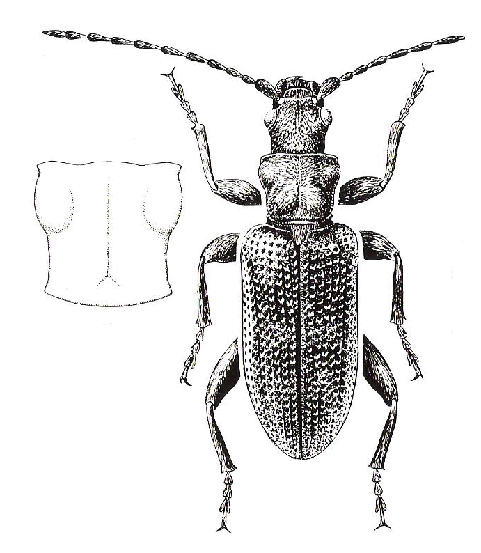 Antenas negras o metálicas, largas y finas, la base de los artículos antenales a veces parcialmente rojiza. Pronoto de tonos opacos, rugoso y granuloso, los ángulos anteriores dirigidos hacia fuera o poco marcados. Patas negras de brillo metálico, a menudo con partes rojizas. Color muy variable, verde, azul, violáceo o púrpura.